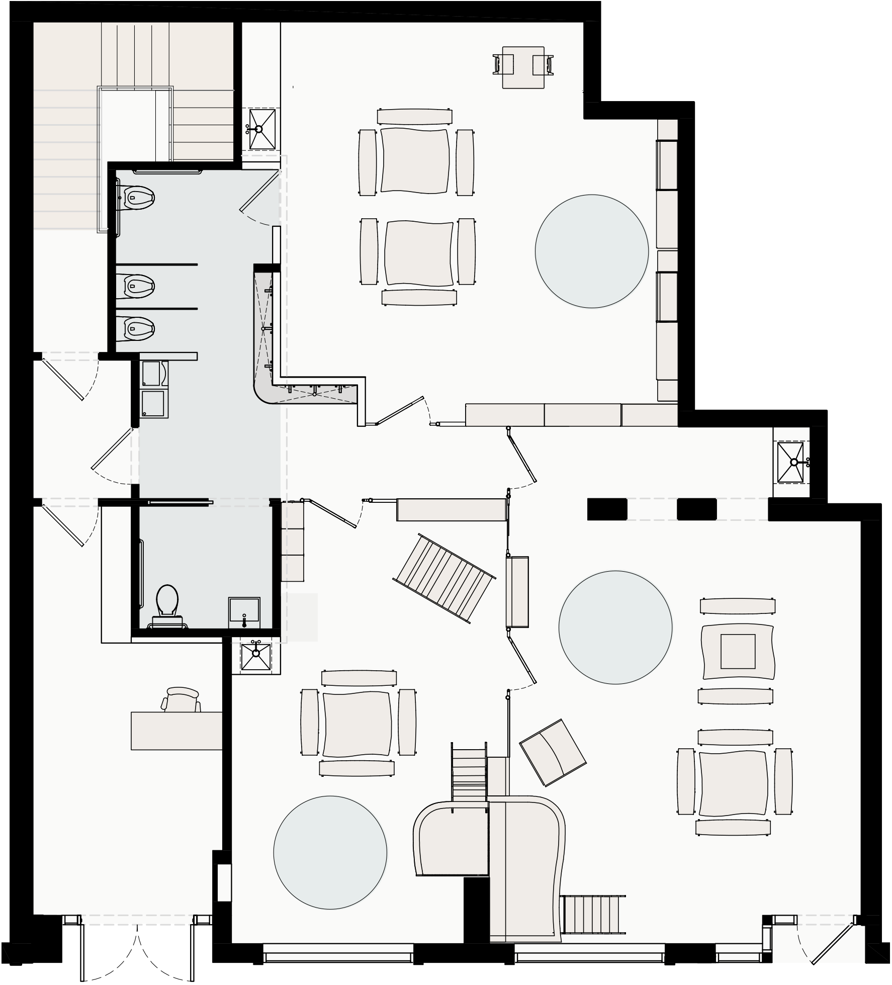Two different user groups and age ranges were accounted for in the design of the space. On one hand, safety, privacy and accessibility were key considerations in developing the layout, particularly for a ground-level Preschool with direct access to the street. On the other hand, the open plan, with classrooms defined through furniture placement and floor patterns, provided the necessary flexibility to accommodate the variety of cultural and community events. Additionally, a small basement area provided support space for the community, as well as a private office to the preschool and cultural center.