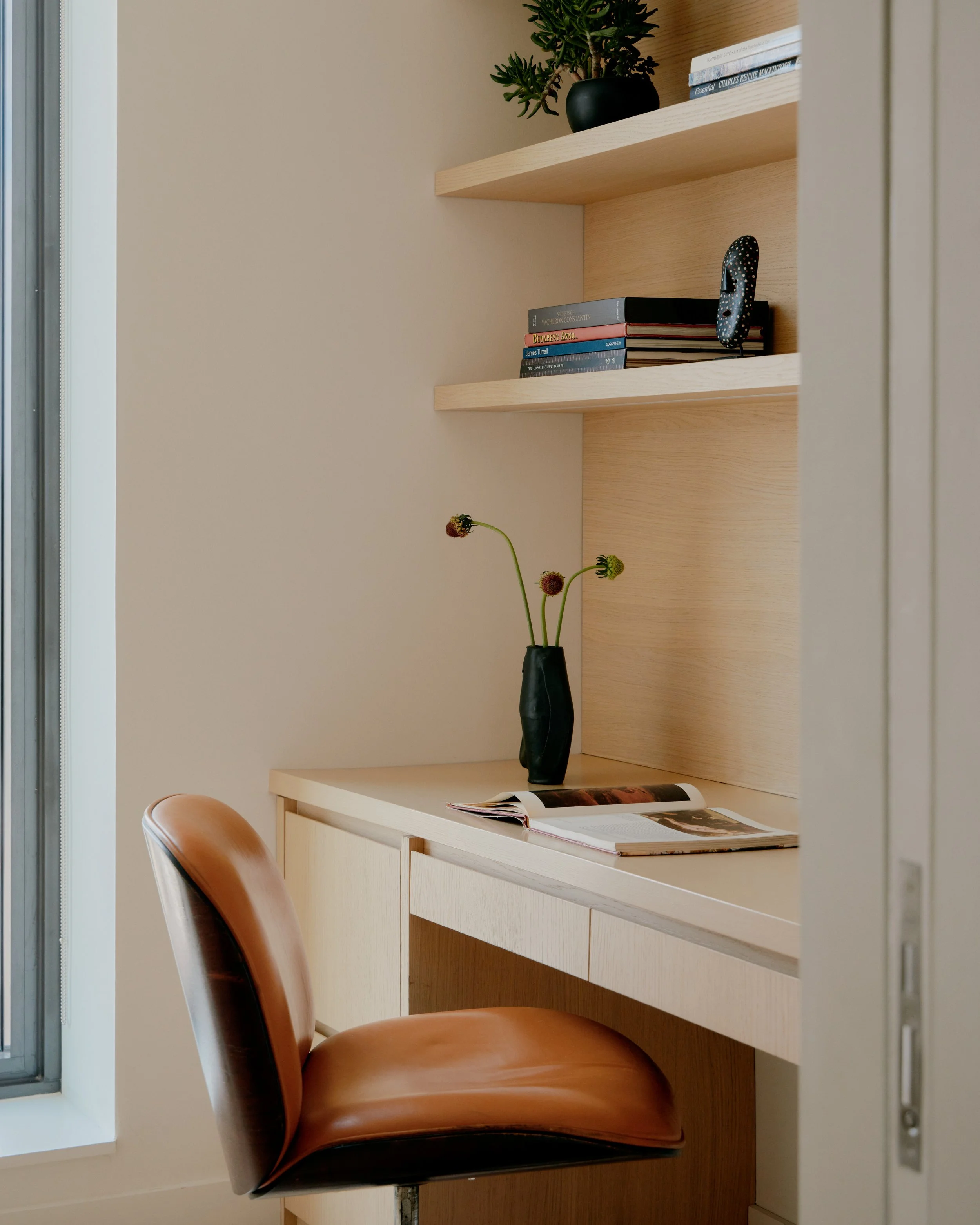 We took cues from the natural light flooding every room, as well as the apartment’s material palette, to design custom millwork pieces that subtly blended in. The formal qualities of their art and furniture collection also guided us in the selection and installation of complementary furnishings.